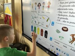 Listopad przywitał nas pięknym jesiennym słońcem, często korzystaliśmy z uroków jesieni i wychodziliśmy do ogrodu przedszkolnego gdzie wesoło bawiliśmy się na urządzeniach. W tym tygodniu poruszaliśmy tematykę bezpieczeństwa w drodze do przedszkola, oglądaliśmy znaki drogowe, poznaliśmy pracę policjanta i wyruszyliśmy na spacer, na przejście dla pieszych. Obserwowaliśmy ruch drogowy oraz sygnalizację świetlną. Wszyscy już pamiętamy, że czerwone światło oznacza stop, a piesi przez jezdnię przechodzą tylko na pasach. Wykonaliśmy też kartonowe samochodziki, które można zobaczyć na naszej wystawie.