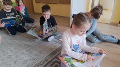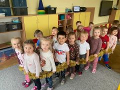 W związku z tym Pani Marzenka  zorganizowała  zabawy logopedyczne . Zawsze w poniedziałki dzieci z zaburzeniami mowy chodzą na zajęcia do Pani Marzenki- ćwicząc aparat mowy, oddech  i prawidłową artykulację głosek.
