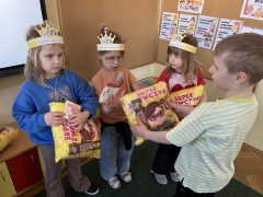 Kosmos – w minionym tygodniu rozmawialiśmy o kosmosie, gdzie on jest, jak wygląda. Snuliśmy domysły, czy też na innych planetach może żyją jakieś ufoludki,  próbowaliśmy sobie ich wyobrazić. Na zajęciach z j. angielskiego wybraliśmy się na popołudnie z angielska herbatką.  Tworzyliśmy torby złości na zajęciach znasza panią psycholog Madzią.
