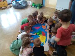 Z okazji Święta Niepodległości w tym roku odbył się konkurs na piosenkę patriotyczną pomiędzy grupami przedszkolnymi. Każda grupa zaprezentowała przygotowany utwór, a następnie wspólnie w bardzo uroczystej atmosferze odśpiewaliśmy Hymn narodowy o godz. 11.11. Jest to akcja „Wspólne śpiewanie hymnu” organizowana przez szkoły i przedszkola w Oświęcimiu. Dzieci wzięły też udział w konkursiedotyczącym wiedzy o Polsce i wykazały się naprawdę dużą wiedzą.