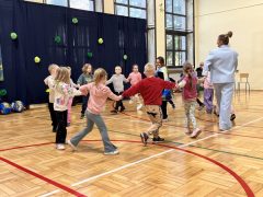 W tym tygodniu skupialiśmy swoją uwagę na współpracy! Na początku pani nam wytłumaczyła, co to znaczy współpracować. Okazało się, że robimy to codziennie – gdy razem budujemy wieże z klocków, bawimy się w berka albo pomagamy sobie nawzajem. A wiecie, że dorośli też muszą współpracować? Strażacy, lekarze, muzycy – wszyscy działają razem! We wtorek wybraliśmy się do szkoły muzycznej na koncert – i to nie byle jaki!  Gdzie uczniowie klasy 3 zaprezentowali swoje umiejętności  w grze na skrzypcach, gitarze, flecie i innych instrumentach!  Całość miała formę przedstawienia o baletnicy, której szukała Dorotka. Było pięknie! Patrzyliśmy jak zaczarowani, a muzyka sprawiła, że niektórym aż nóżki same chciały tańczyć! Poznaliśmy także cyfrę 10!  Z radością ćwiczyliśmy jej zapis, liczyliśmy na różne sposoby, a także łączyliśmy zabawę z nauką matematyki! Teraz wiemy, że mamy 10 palców u rąk, 10 palców u nóg, a nawet potrafimy policzyć do 10 z zamkniętymi oczami! To dopiero sztuka! W wolnych chwilach chętnie sięgaliśmy do przedszkolnej bibliteczki po książeczki i próbowaliśmy swoich sił w czytaniu. Niektórzy próbowali czytać samodzielnie, inni z małą pomocą, ale wszyscy świetnie sobie radzili! Literki powoli przestają być takie tajemnicze i chyba niedługo będziemy prawdziwymi mistrzami czytania. Na zakończenie tygodnia czekało na nas wielkie wydarzenie – olimpiada sportowa w Szkole Podstawowej nr 8 pod hasłem „Każdy może być sportowcem”! Biegaliśmy, skakaliśmy i dawaliśmy z siebie wszystko! A na koniec każdy z nas dostał medal, który z dumą nosił przez cały dzień. Wśród tych wszystkich emocji, świętowaliśmy także 7. Urodziny naszej koleżanki Oli! Jeszcze raz życzymy Ci Olusiu mnóstwo zdrowia, szczęścia i spełnienia wszystkich marzeń! To był tydzień pełen przygód, radości, nauki i niezapomnianych chwil. Już nie możemy się doczekać, co przyniesie następny!