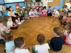 W tym dniu odbyło się również Pasowanie na Przedszkolaka – nastąpił akt pasowania, czyli dotknięcie ramienia każdego przedszkolaka ogromną kredką przez Panią Dyrektor. Dla przedszkolaków było to wielkie przeżycie, a Rodzice mogą być dumni i zadowoleni ze swoich pociech. Gratulujemy!