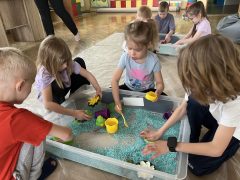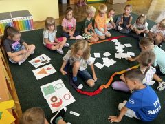 Dzień matematyki w naszej grupie obchodziliśmy w czwartek 12 marca. Zajęcia matematyczne dla dzieci zostały przygotowane na podstawie programu edukacyjnego Zakodowana Kraina Przygód Zosi- wyzwanie 23. Poprzez aktywne gry, kodowanie, liczenie, rozpoznawanie figur geometrycznych i odwzorowywanie układu mozaiki geometrycznej oraz zabawy w domino i kostkę Rubika dzieci rozwijały logiczne myślenie, spostrzegawczość oraz koordynację wzrokowo – ruchową. Była to doskonała okazja, aby pokazać dzieciom, że matematyka to nie tylko nauka ale też wspaniała zabawa.