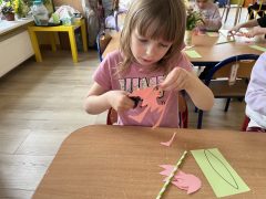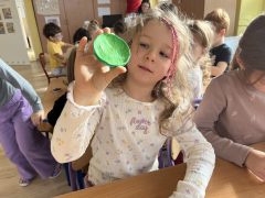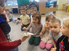 Rozwijaliśmy wrażliwość muzyczną: rozpoznawaliśmy przedmioty codziennego użytku po wydawanych przez nie dźwiękach; tworzyliśmy akompaniament do utworu muzyki poważnej. Improwizowaliśmy taniec z chustą do muzyki klasycznej.