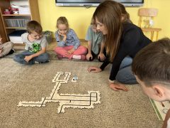 W ostatnim tygodniu bawiliśmy się w teatr i kino, poszerzaliśmy wiadomości na temat teatru oraz kina, rozwijaliśmy umiejętność odróżniania wstydu od tremy, bawiliśmy się pacynkami, kukiełkami. Rozmawialiśmy na temat; jak należy zachować się w teatrze ? Urządziliśmy z p.Anią prawdziwe kino z popcornem.