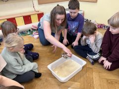 Ubiegły tydzień upłynął nam na poznawaniu zakamarków pachnącej łąki. Wiosennych dźwięków, które towarzyszą budzeniu się owadów oraz palecie barw kwitnących i pachnących kwiatów. Rozmawialiśmy o najbardziej pożytecznych, pracowitych jak również potrzebnych owadach, jakimi są pszczoły oraz degustowaliśmy naturalnych miód.