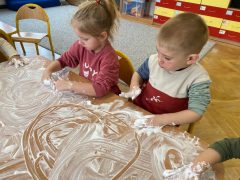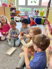 Niezwykle miło było nam spotkać się po wakacyjnej przerwie. Całą grupą zwiedziliśmy przedszkole, dotarliśmy nawet do kuchni i piwnicy. Z radością powitaliśmy także dzielne maluszki, które dopiero rozpoczęły przedszkolną przygodę. Na zajęciach opisywaliśmy wygląd  naszej nowej sali oraz obserwowaliśmy jak wyglądamy my i czym różnimy się między sobą. Nie zabrakło również chwil radosnej zabawy w ogrodzie przedszkolnym.