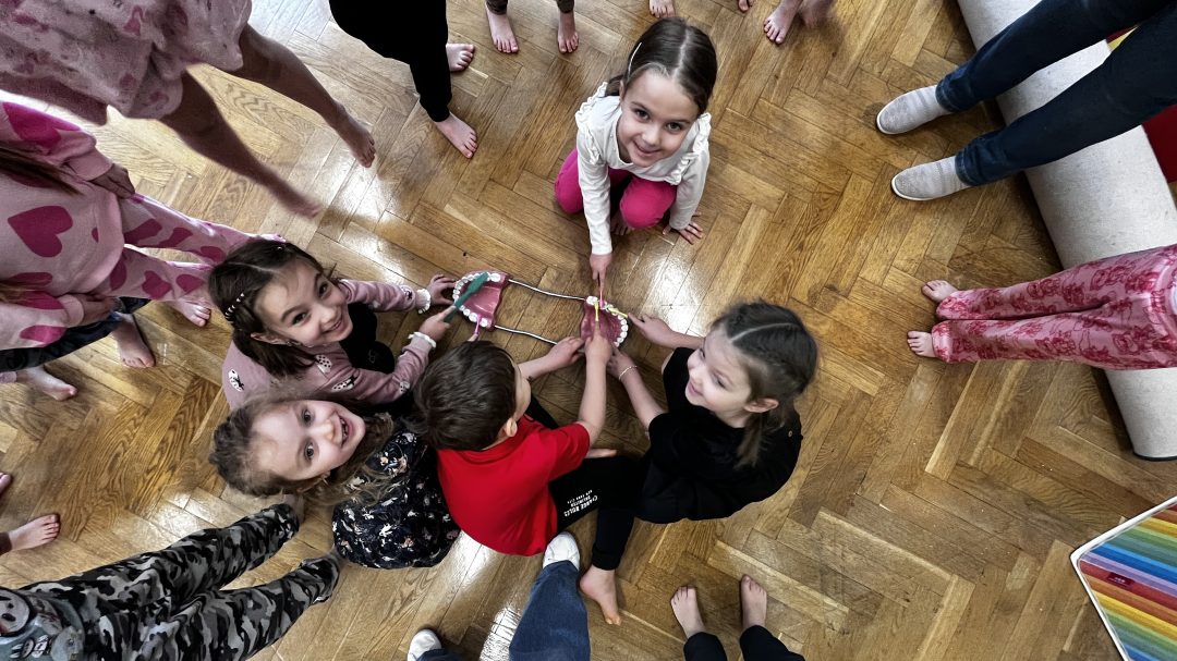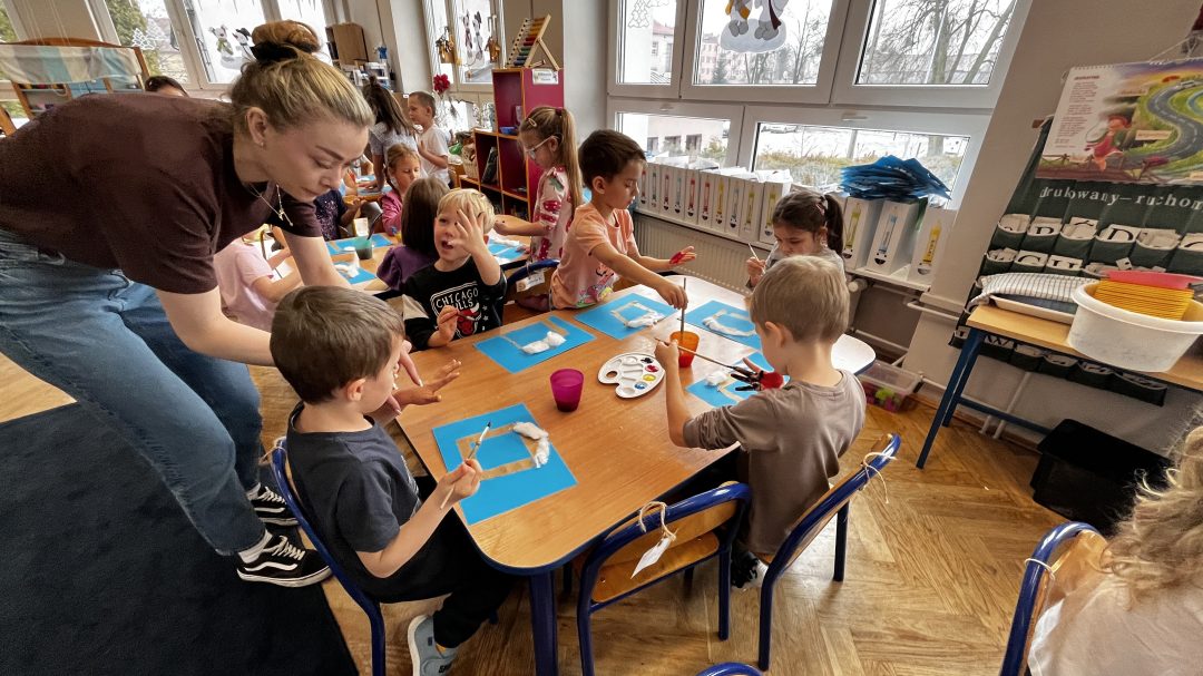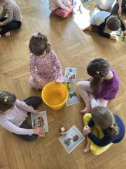 Poznajemy zawody – miniony tydzień upłynął nam na rozmowach na temat zawodów. Uczestniczyliśmy w lekcji angielskiego „Na zielonej angielskie łące”. Również wraz z p. psycholog braliśmy udział w zajęciach jogi dziecięcej.
