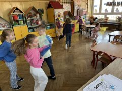 Wielkanoc tuż, tuż….…w przedszkolu to czas radosnego oczekiwania, poznawania tradycji (pisanki, święconka, śmigus-dyngus) oraz symboli świątecznych (baranek, kurczaczek, zajączek). Tydzień wypełniły zajęcia plastyczne podczas których dzieci wykonały plastelinowe pisanki , baranka z płatków kosmetycznych, zajączka i kurczątko, nauczyły się piosenki „Kolorowe święta” oraz rymowanki – pokazywanki „Zajączek” Liczne zabawy ruchowe oraz rozmowy , opowiadania i wiersze utrwaliły wiadomości o zwyczajach i tradycjach wielkanocnych. Podczas tego tygodnia dzieci wzięły udział w przedstawieniu teatralnym „Czarująca żaba” w którym poznały co to jest prawdziwa odwaga oraz wiara we własne siły.